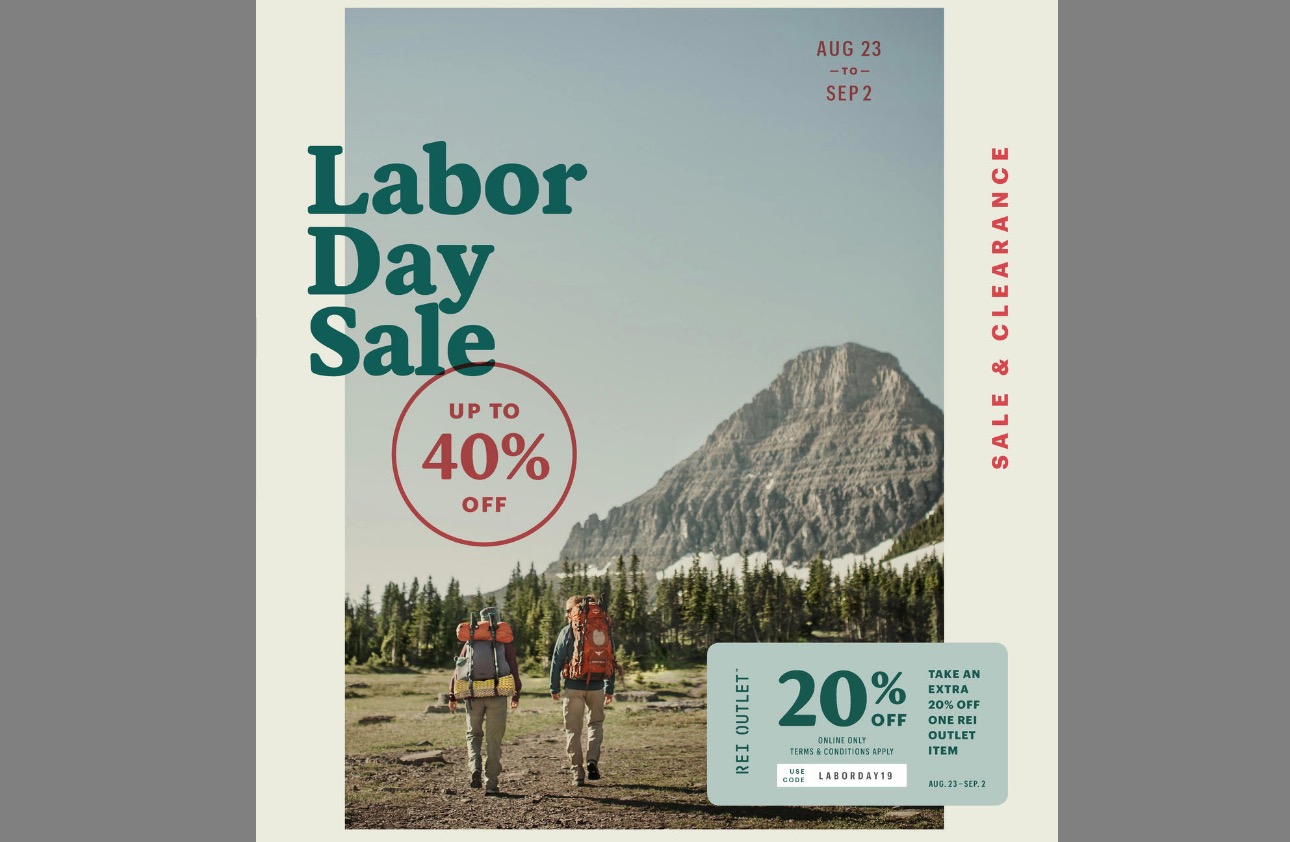20 Great Deals at REI's Labor Day Sale - CleverHiker And REI's Labor Day Sale, which runs from August 28th to September 7th, is the perfect time to get your hands on the gear you've been eyeing. In addition to deep discounts, REI members also receive an extra 20% off one outlet item with coupon code: LABORDAY20. We scoured the sale and narrowed this list down to the gear we're most stoked about.