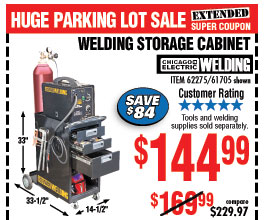 CHICAGO ELECTRIC Welding Cabinet for $169.99 Buy the CHICAGO ELECTRIC Welding Cabinet (Item 61705) for $169.99 with coupon code 95938598, valid through June 2, 2022. See the coupon for details.