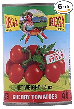 REGA Cherry Tomatoes, Pack of 6 Cans, 14 Ounce Each Can, All Natural Imported from Italy, Rega Pomodorini