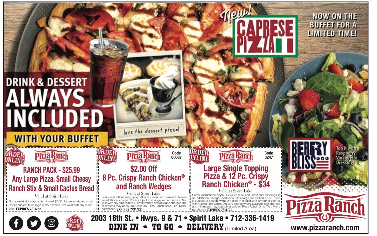 $15 OFF Pizza Ranch Coupons & Promo Deals - Cedar Rapids, IA $15 OFF Pizza Ranch Coupons & Promo Deals - Cedar Rapids, IA January 2022 - Click for $15 off Pizza Ranch Coupons in Cedar Rapids, IA. Save printable Pizza Ranch promo codes and discounts. Deals Top Cities New York Chicago Minneapolis Los Angeles San Diego Seattle Houston Phoenix Denver Hoboken By State Fast Food Chains Local Popular Cities