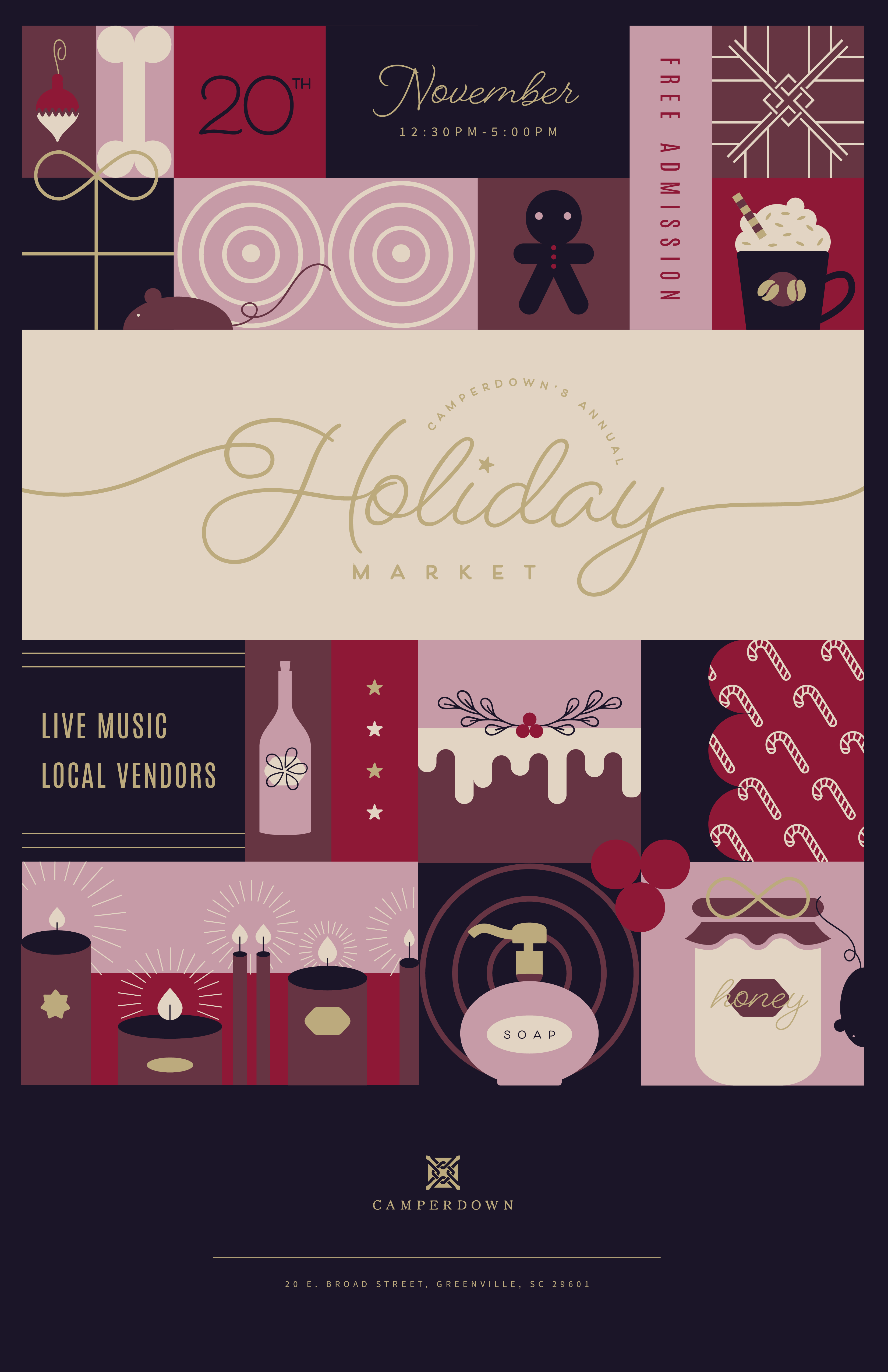 Holly Jolly Sat, Nov. 19th 10-6p BUY ONLINE Limited Tickets & SAVE MONEY 200 Handmade/Holiday/Vintage Vendors Food, drink & dessert trucks Free chair masssages Music & DIY with the artisans themselves! Event ticket needed for entry and DIY classes FREE gift wrapping station 4-5pm FREE custom hand writting gift tags by Kindal with Willow White 4-5pm