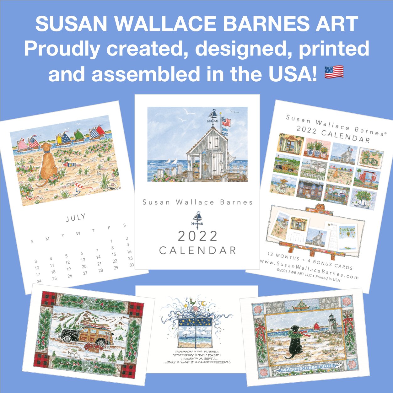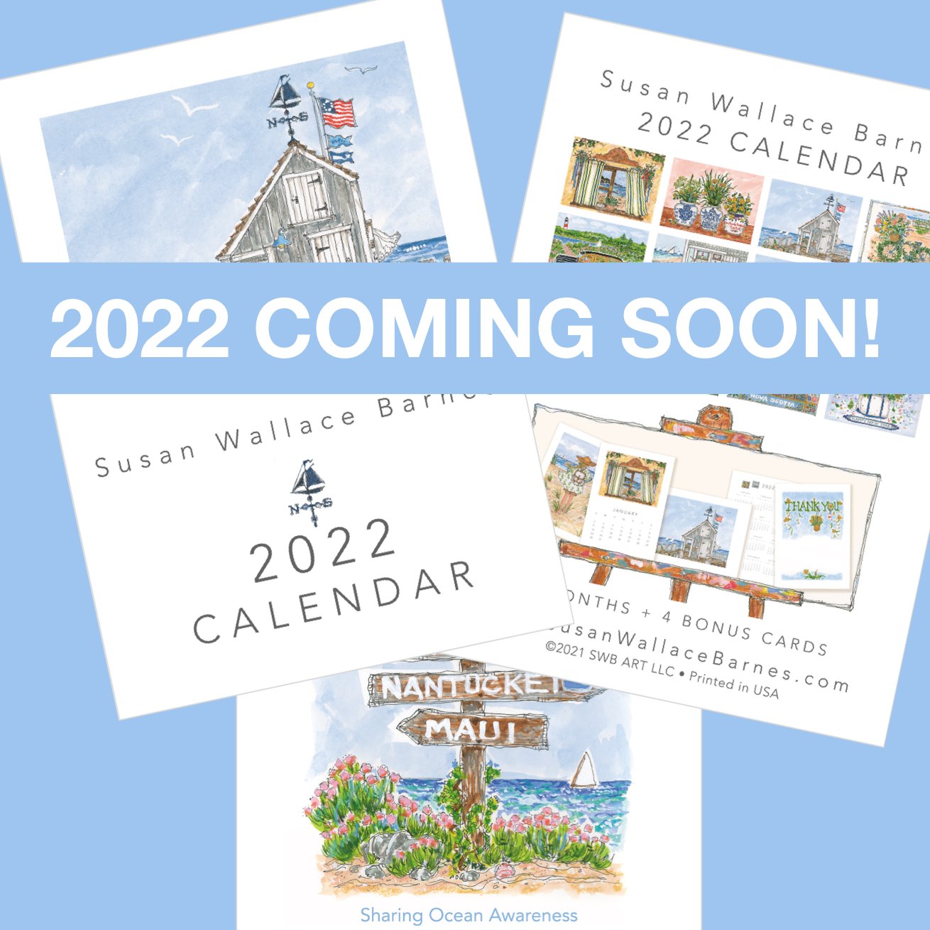 The Official Susan Wallace Barnes® Art Store THE NEW 2023 SWB CALENDAR COLLECTIONS ARE NOW AVAILABLE TO ORDER HERE! The NEW 2023 Calendar Collections once again include the twelve months of the year plus a year at a glance card and three additional art cards: • "THANK YOU (Lighthouse Shell)" card. • "Soft Summer Breeze" art card. • "CELEBRATE" art card.